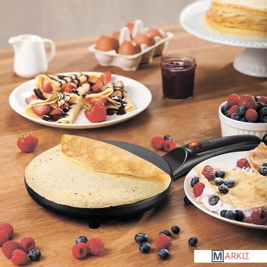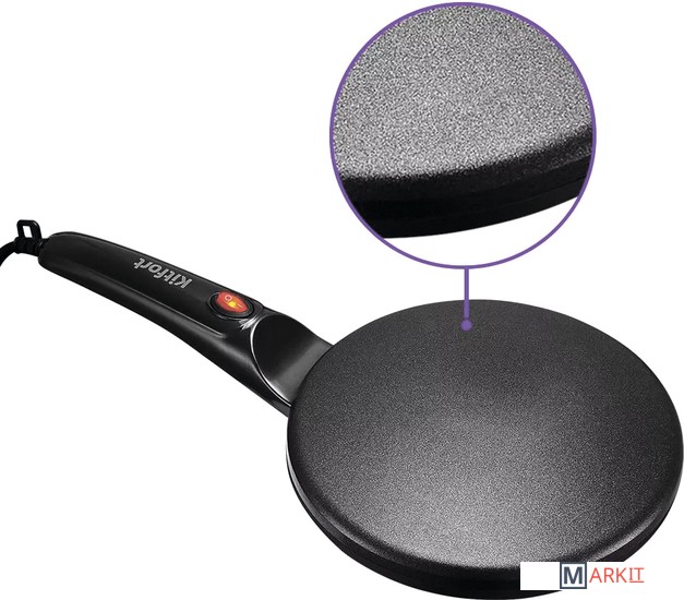 С помощью погружной блинницы Kitfort КТ-1676 можно испечь блины быстро и без особых усилий. Блин получается с ровными краями и равномерной толщины. Блинницу не нужно ставить на плиту, поэтому печь можно на любой удобной твёрдой поверхности.В комплекте идёт блюдце для блинного теста. Разогретая в течение 5-7 мин поверхность блинницы погружается в тесто на 5-8 секунд, а затем ставится на стол для дальнейшей жарки. Через 60-90 сек блин переворачивается, и ещё после 60-90 сек блин готов!Благодаря антипригарному покрытию готовить можно с минимальным количеством масла: масло добавляется в тесто, поэтому при выпечке оно не разбрызгивается в разные стороны. Блинница оснащена термостатом для поддержания постоянной температуры.У блинницы имеется всего одна кнопка Вкл/Выкл. Подсветка индикатора свидетельствует о том, что прибор включен.У блинницы на дне имеются противоскользящие ножки, которые обеспечивают фиксированное положение прибора на поверхности.Благодаря продуманной технологии выпекания, даже если вы готовите в первый раз, у вас получатся одинаковые как по толщине, так и по диаметру идеальные блины. Если же вы профессионал, то блинница существенно сократит и время приготовления, и ваши усилия.Длина шнура: 1 м.