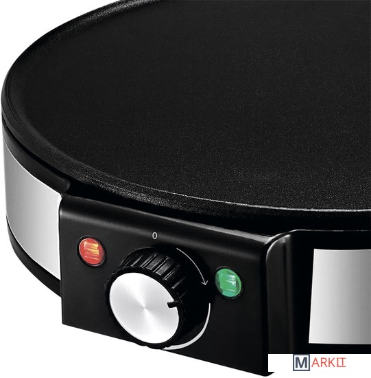 С помощью блинницы КТ-1678 можно быстро испечь блины. Максимальный диаметр блина составляет 30 см. Больше блинчик – больше начинки! С её помощью также можно приготовить румяные панкейки и оладьи.Блинницу не нужно устанавливать на плиту, поэтому можно готовить на любой удобной ровной поверхности, устойчивой к высоким температурам. С помощью палочки для распределения теста блин получается идеально ровной и той толщины, которую хотите вы.Регулятор нагрева позволяет регулировать температуру нагрева блинницы: поверните регулятор по часовой стрелке до необходимого уровня. Индикация указывает на процесс нагрева.Благодаря антипригарному покрытию готовить можно с минимальным количеством масла: масло добавляется в тесто, поэтому при выпечке оно не разбрызгивается в разные стороны.Для удобства блинница оснащена креплениями для хранения шнура питания. Прорезиненные ножки устойчиво фиксируют прибор на поверхности.С помощью данного прибора можно также приготовить панкейки, оладьи, поджарить бекон, сделать яичницу, подогреть хлеб.Длина шнура: 0.7 м.