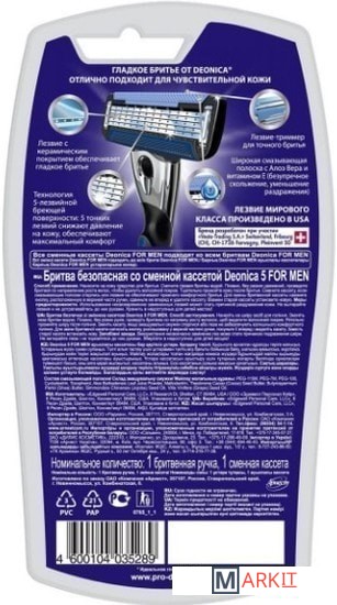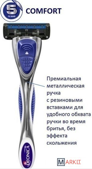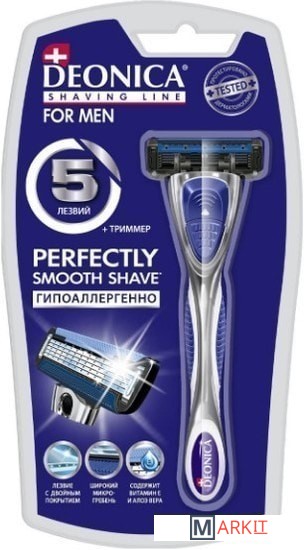 Бритва для мужчин с 5 лезвиями мирового класса произведена в США. Технология 5 лезвийной бреющей поверхности мужской бритвы Deonica легко срезает волоски, делая бритье максимально комфортным. Следует контурам твоего лица для лучшего бритья. Всего одно движение бритвой для невероятно чистого бритья и шелковистой гладкости кожи. Лезвия для бритвы имеют двойное керамическое покрытие, что гарантирует более точное и чистое бритье. Широкая гипоаллергенная смазывающая полоска с Алоэ Вера и витамином Е нежно ухаживает за кожей и обеспечивает безупречное скольжение. Премиальная металлическая ручка COMFORT имеет резиновые вставки для удобного обхвата ручки, она не будет выскальзывать у вас из рук в процессе бритья. Уникальная система бритвенных станков Deonica позволяет использовать любые кассеты для бритвы Deonica на 3, 5 или 6 лезвий. Бритвенная серия Deonica это гладкое и комфортное бритье без раздражений даже на самой чувствительной коже!