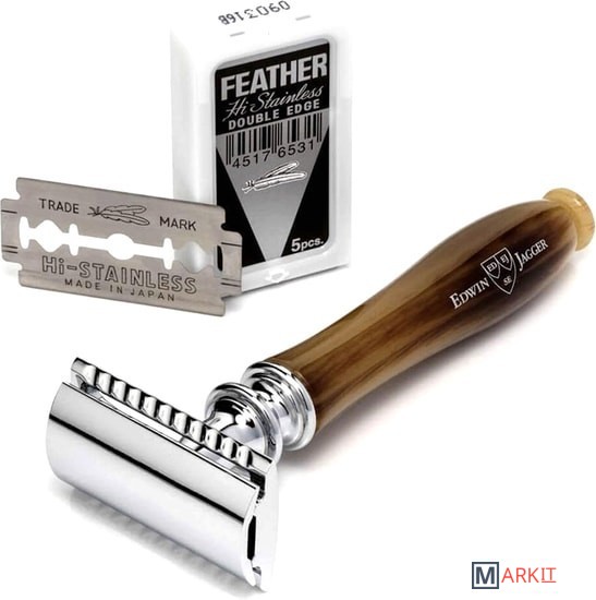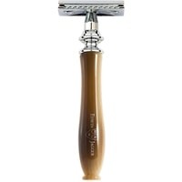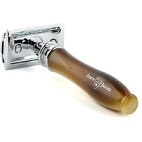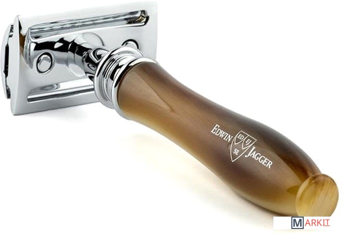Премиальный т-образный станок Chatsworth английского бренда Edwin Jagger с ручкой из смолы цвета рога. Все металлические элементы бритвы сделаны из высококачественной нержавеющей стали и покрыты хромом для придания блеска и дополнительной долговечности. Поставляется в фирменной упаковке Edwin Jagger, с 5-ю лезвиями.