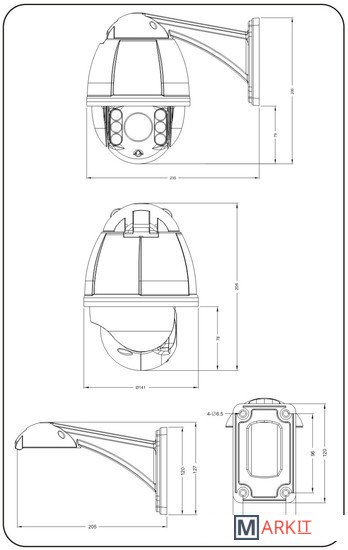 Мин. освещённость в ч/б режиме 0 лк  (ИК вкл.)
