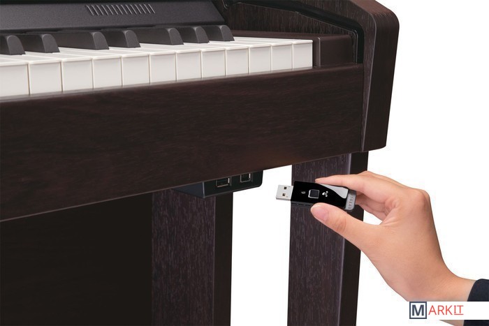 Фортепиано со звуком SuperNATURAL® Piano, клавиатурое PHA-4 Concert с Escapement и покрытием клавиш по слоновую кость и черное дерево, встроенным в пюпитр дисплеем высокого разрешения, и интерактивными обучающими программами.