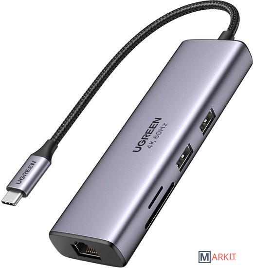 Концентратор UGREEN 7 в 1 USB-C оснащен портом Ethernet 1000 Мбит/с, портом HDMI 4K@60 Гц, портом для зарядки USB C с мощностью 100 Вт, устройством чтения карт SD/TF и 2 портами USB 3. 0. Подключайтесь к новейшим MacBook Pro или устройствам USB-C с помощью многопортового адаптера, чтобы обеспечить удобство в работе.Просто подключите порт HDMI, и вы сможете проецировать видеоконтент UHD 4K@60Hz/30Hz или Full HD 1080p 60Hz на HDTV, мониторы или проекторы. Проецируйте фильмы, презентации или видеоигры на мониторы в один клик. (Примечание: 4K@60Hz доступно только для ноутбуков с поддержкой DisplayPort 1.4 и 8K).Док-станция оснащена встроенным входом Type-C, что позволяет заряжать устройства, имея доступ к нескольким периферийным устройствам. Мощность распределяется между всеми подключенными к док-станции устройствами USB-C и регулируется в зависимости от потребностей. Концентратор выдает около 95 Вт для зарядки подключенного ноутбука и 5 Вт для питания концентратора при подключении к 100-ваттному входу питания.Порт Ethernet 1000 Мбит/с обеспечивает более стабильное и быстрое подключение к проводной сети (Примечание: для получения скорости 1 Гбит/с требуется порт LAN маршрутизатора, кабель CAT5e и высокоскоростной драйвер Ethernet). Порт RJ45 может распознавать скорость интернета и автоматически настраивается на самый высокий уровень, независимо от того, является ли она 10/100/1000 Мбит/с.2* порта USB 3.0 поддерживают скорость передачи данных до 5 Гбит/с, достаточно быструю для передачи HD-фильмов за считанные секунды. Также идеально подходит для подключения клавиатуры, мыши, флэш-накопителей и других периферийных устройств, подключаемых через порт USB A. Устройство чтения карт SD TF (скорость до 104 Мб/с) для устройств USB-C/Type-C/Thunderbolt 3 для доступа к файлам с устройств чтения карт SD/TF.