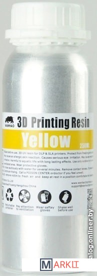 Markit » Расходные материалы для 3д принтера » Фотополимер Wanhao Water Washable 250 мл (желтый)