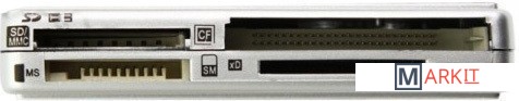 Поддержка карт (без адаптера) CompactFlash, SD, SDHC, Memory Stick, Memory Stick PRO, MMC, MMCplus, xD