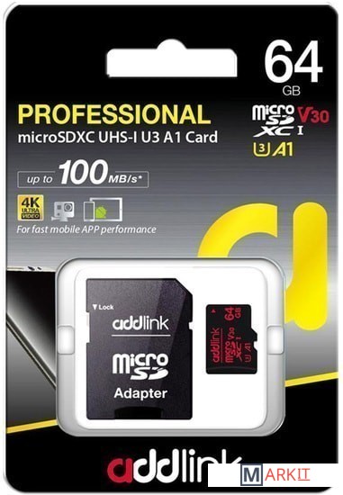 Markit » Карты памяти » Карта памяти Addlink microSDXC AD64GBMSXU3A 64GB (с адаптером)
