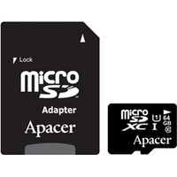 Карта памяти Apacer microSDXC (Class 10) 64GB + адаптер [AP64GMCSX10U1-R] Код: 95315