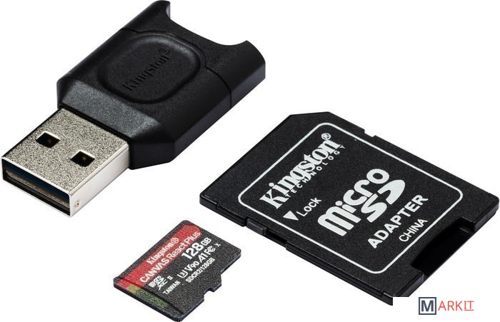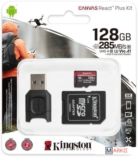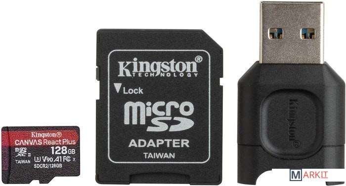 Markit » Карты памяти » Карта памяти Kingston Canvas React Plus microSDXC 128GB (с адаптером и кардридером)