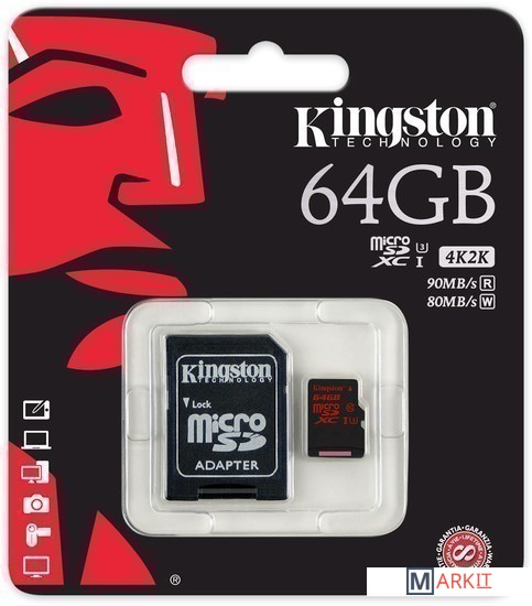 Markit » Карты памяти » Карта памяти Kingston microSDXC UHS-I U3 (Class 10) 64GB (SDCA3/64GB)