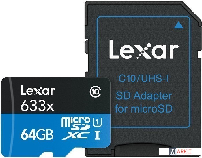Markit » Карты памяти » Карта памяти Lexar 633x Class 10 64GB + адаптер