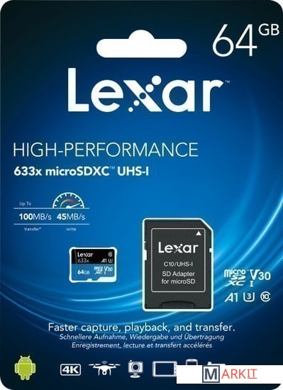 Markit » Карты памяти » Карта памяти Lexar 633x microSDXC LSDMI64GBB633A 64GB (с адаптером)