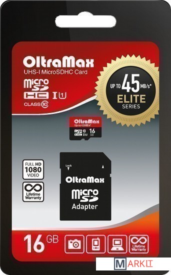 Markit » Карты памяти » Карта памяти Oltramax Elite OM016GCSDHC10UHS-1-ElU1 microSDHC 16GB (с адаптером)