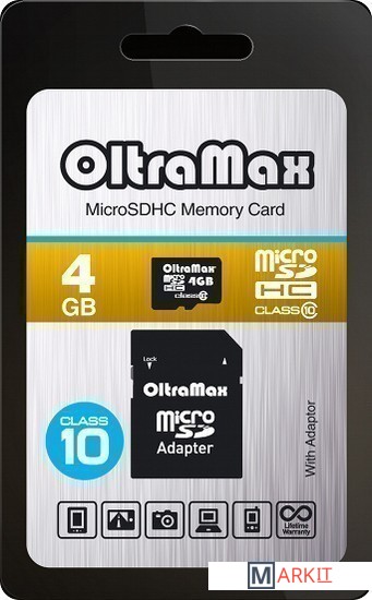 Markit » Карты памяти » Карта памяти Oltramax microSDHC Class 10 4GB +адаптер