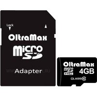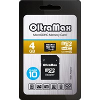 Карта памяти Oltramax microSDHC Class 10 4GB +адаптер Код: 95975