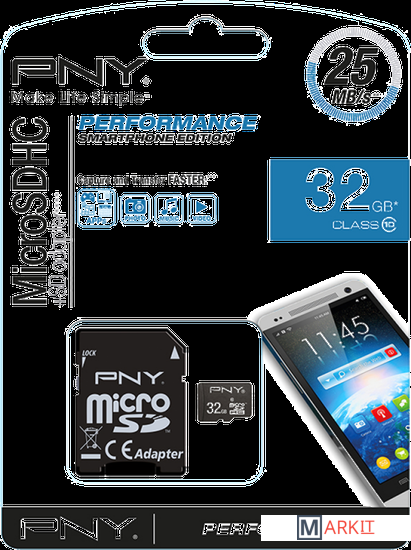 Markit » Карты памяти » Карта памяти PNY MicroSDHC Performance 32GB (SDU32GPER25-EF)