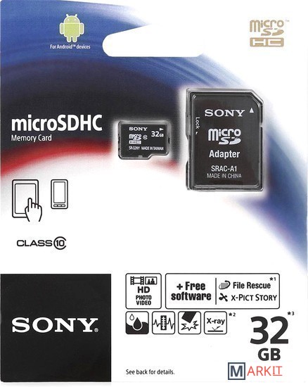 Markit » Карты памяти » Карта памяти Sony microSDHC (Class 10) 32GB + адаптер (SR32NYAT)
