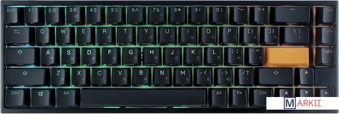 TKL слишком большая, а в MINI не хватает стрелок? SF — это 65%-й компромисс от Ducky. Больше не придется устраивать из клавиатуры макропианино ради любимых стрелок. Наконец-то появилась возможность поиграть в антологию Lego игр на двоих с одной клавиатуры. А помнишь, как в детстве ты играл в Need for Speed: Most Wanted, управляя машиной именно стрелками? Эта возможность для лаконичного форм-фактора теперь официально реинкарнирована. Ducky делают клавиатуры в первую очередь для геймеров. Уже из коробки ONE 2 SF RGB оснащена классическим дизайном, хорошим качеством сборки, PBT double-shot кейкапами и настраиваемой RGB подсветкой.RGB подсветкаПрисутствует множество различных режимов, регулировка цвета осуществляется через палитру или отдельную настройку красного, зеленого, синего цветов. Также можно создать кастомный режим статичной подсветки.ПрограммируемаяDucky Macro 2.0 дает возможность создавать макросы. Можно создать свои мультимедиа, функциональные макросы и многое другое.Регулируемые ножкиДвойные регулируемые ножки предоставляют целых два угла наклона клавиатуры для более комфортной печати, а их прорезиненный низ не даст клавиатуре сдвинуться с местаРусифицированные PBT double-shot клавишиИзготовлены из высокопрочного пластика PBT с применением double-shot технологии, что гарантирует их долговечность и надежность в эксплуатации.DIP-переключателиДают возможность поменять расположение клавиши FN и переключиться между NKRO и 6KRO.Функция Full N-key Rollover по USB (NKRO)Позволяет нажимать одновременно неограниченное количество клавиш. Для печати идеально подойдет как 6KRO, так и NKRO независимо от вашей скорости. Для игр NKRO будет плюсом и неважно, нажимаете ли вы больше 6 кнопок или нет, поскольку, играя в любую игру, вы можете случайно нажать пару лишних клавиш и из-за этого клавиатура имеет шанс не среагировать на нажатие, которые вы хотели совершить изначально. Также присутствует возможность переключения на 6KRO.