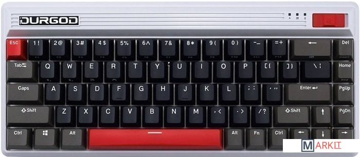 КЛАВИАТУРА БЕЗ КИРИЛЛИЦЫТип: линейныйСила нажатия: 45 грамм (средние)Длина пути: 3.4 мм (1.2 мм до срабатывания)Помимо подключения через стандартный кабель USB клавиатура может работать в одном из двух беспроводных режимов — Bluetooth 5.0 или беспроводном соединении 2.4G, обладающем меньшей, по сравнению с Bluetooth, задержкой. Переключение между режимами осуществляется с помощью специального слайдера в верхней правой части. Благодаря беспроводному подключению вы также можете подключить клавиатуру к устройствам на iOS или Android.Два кабеля в комплекте - Вы можете использовать как USB Type-C, так и старый добрый USB Type-A.Мультимедиа и дополнительные FN функции - Клавиатура поддерживает сочетания клавиш для регулировки громкости и управления музыкой. Также имеется возможность отключить кнопку Windows.Durgod Zeus Engine позволяет создавать макросы. Можно создать свои мультимедиа, функциональные макросы и многое другое. ПО не поддерживается на Mac OS.Прочные регулируемые ножки позволят немного приподнять клавиатуру и изменить её угол наклона для более комфортной печати, а их прорезиненное дно не даст клавиатуре сдвинуться с места.Функция Full N-key Rollover по USB (NKRO) - Позволяет нажимать одновременно неограниченное количество клавиш. Для печати идеально подойдет как 6KRO, так и NKRO, независимо от вашей скорости. Для игр NKRO будет плюсом и неважно, нажимаете ли вы больше 6 кнопок или нет, поскольку, играя в любую игру, вы можете случайно нажать пару лишних клавиш и из-за этого клавиатура может не среагировать на нажатие, которые вы хотели совершить изначально. Осторожно, старые BIOS-ы могут не реагировать на клавиатуру из-за NKRO.