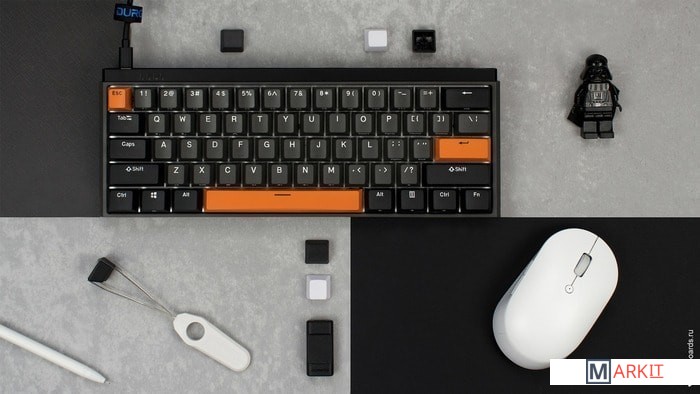 Переключатели Gateron CAP V2 CrystalНовейшая разработка Gateron, созданная в сотрудничестве с Durgod на основе Gateron CAP. Переключатели смазаны с завода, а конструкция стэма и хаузинга переработана таким образом, чтобы выпускать избыточный воздух при нажатии, благодаря чему они ощущаются стабильнее и мягче. Производителем заявлен ресурс более 80 миллионов нажатий (более 60 миллионов для Blue). Durgod K330W — первая массовая клавиатура с этими переключателями.Два режима беспроводного подключенияПомимо подключения через стандартный кабель USB клавиатура может работать в одном из двух беспроводных режимов — Bluetooth 5.0 или беспроводном соединении 2.4G, обладающем меньшей, по сравнению с Bluetooth, задержкой. Переключение между режимами осуществляется с помощью специального слайдера, расположенного справа на задней стороне клавиатуры. Благодаря беспроводному подключению вы также можете подключить клавиатуру к устройствам на iOS или Android. В беспроводном режиме можно подключить до 3-х устройств одновременно и переключаться между ними с помощью всего пары нажатий. Подробнее в инструкции.В модели K330W Durgod переработали и улучшили 2.4G адаптер: теперь он устойчивее к помехам от окружающего пространства, благодаря чему сигнал стал сильнее и стабильнее, а время отклика уменьшилось.До 240 дней работы без подзарядкиОптимизированное энергопотребление позволило добиться невероятно долгого времени работы в беспроводном режиме без использования большого и тяжёлого аккумулятора. Производитель обещает до 180 дней без подзарядки в режиме 2.4G и до 240 дней в режиме Bluetooth!ПортативностьСочетание компактности 60% формата, исключительной автономности и лёгкости (вес клавиатуры — всего 520 грамм) позволяет легко носить клавиатуру с собой и брать её куда угодно, не испытывая проблем с нехваткой мобильности.Мультимедиа и дополнительные FN функцииКлавиатура поддерживает сочетания клавиш (FN + Z, X, C, V, B, N, M) для регулировки громкости и управления музыкой. Также имеется возможность отключить кнопку Windows.Стабилизаторы, смазанные на заводеСочетание стабилизаторов и смазки позволяет добиться максимально равномерного и плавного хода клавиш enter/space/shift/backspace, а сами клавиши легко снять с клавиатуры.PBT Double-shot клавишиИзготовлены из высокопрочного пластика PBT с применением double-shot технологии, что гарантирует их долговечность и надёжность в эксплуатации.ПрограммируемаяПрограмма Durgod Zeus Engine позволяет создавать макросы. Можно создать свои мультимедиа, функциональные макросы и многое другое. ПО не поддерживается на Mac OS, однако все ваши настройки, сохранённые в программе на Windows, останутся в памяти клавиатуры, и вы сможете использовать их на Mac.Регулируемые ножкиПрочные регулируемые ножки позволят немного приподнять клавиатуру и изменить её угол наклона для более комфортной печати, а их прорезиненный низ не даст клавиатуре сдвинуться с места.Клавиатура совместима с Mac OSМультимедийные функции (за исключением Launchpad, Mission Control и регулировки яркости экрана) доступны через сочетания FN + Z, X, C, V, B, N, M и работают как полагается, а поменять местами клавиши-модификаторы можно в системных настройках.Функция Full N-key Rollover по USB (NKRO)Позволяет нажимать одновременно неограниченное количество клавиш. Для печати идеально подойдет как 6KRO, так и NKRO, независимо от вашей скорости. Для игр NKRO будет плюсом и неважно, нажимаете ли