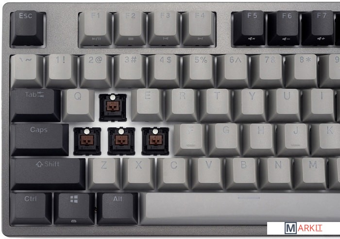 КЛАВИАТУРА БЕЗ КИРИЛЛИЦЫТип: линейныйСила нажатия: 45 грамм (средние)Длина пути: 3.4 мм (1.2 мм до срабатывания)Настраиваемая белая подсветка - Поддерживает 11 режимов, регулировку яркости, скорости и направления анимации.Клавиатура поддерживает сочетания клавиш для регулировки громкости и управления музыкой. Также имеется возможность отключить кнопку Windows.Два кабеля в комплекте - Вы можете использовать как USB Type-C, так и старый добрый USB Type-A.Durgod Zeus Engine позволяет создавать макросы. Можно создать свои мультимедиа, функциональные макросы и многое другое. ПО не поддерживается на Mac OS.Канавки для укладки кабеля - Расположены с обратной стороны клавиатуры и позволяют выводить кабель в трёх направлениях — слева, справа и посередине.Двойные регулируемые ножки предоставляют целых три варианта угла наклона клавиатуры для более комфортной печати, а их прорезиненное дно не даст клавиатуре сдвинуться с места.Позволяет нажимать одновременно неограниченное количество клавиш. Для печати идеально подойдет как 6KRO, так и NKRO, независимо от вашей скорости. Для игр NKRO будет плюсом и неважно, нажимаете ли вы больше 6 кнопок или нет, поскольку, играя в любую игру, вы можете случайно нажать пару лишних клавиш и из-за этого клавиатура может не среагировать на нажатие, которые вы хотели совершить изначально. Осторожно, старые BIOS-ы могут не реагировать на клавиатуру из-за NKRO.