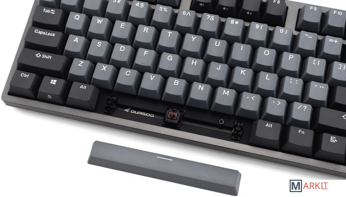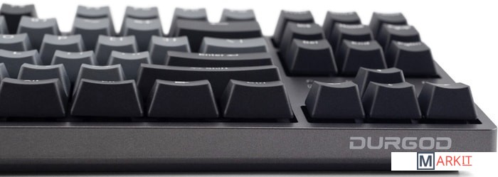 КЛАВИАТУРА БЕЗ КИРИЛЛИЦЫТип: кликающийСила нажатия: 60 грамм (несмотря на вес, средние)Длина пути: 4 мм (2.2 мм до срабатывания)Клавиатура поддерживает сочетания клавиш для регулировки громкости и управления музыкой. Также имеется возможность отключить кнопку Windows.Два кабеля в комплекте - Вы можете использовать как USB Type-C, так и старый добрый USB Type-A.Durgod Zeus Engine позволяет создавать макросы. Можно создать свои мультимедиа, функциональные макросы и многое другое. ПО не поддерживается на Mac OS.Канавки для укладки кабеля - Расположены с обратной стороны клавиатуры и позволяют выводить кабель в трёх направлениях — слева, справа и посередине.Двойные регулируемые ножки предоставляют целых три варианта угла наклона клавиатуры для более комфортной печати, а их прорезиненное дно не даст клавиатуре сдвинуться с места.Позволяет нажимать одновременно неограниченное количество клавиш. Для печати идеально подойдет как 6KRO, так и NKRO, независимо от вашей скорости. Для игр NKRO будет плюсом и неважно, нажимаете ли вы больше 6 кнопок или нет, поскольку, играя в любую игру, вы можете случайно нажать пару лишних клавиш и из-за этого клавиатура может не среагировать на нажатие, которые вы хотели совершить изначально. Осторожно, старые BIOS-ы могут не реагировать на клавиатуру из-за NKRO.