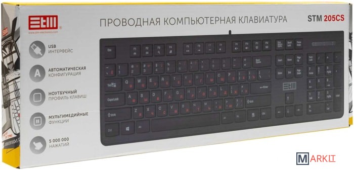 STM 205CS – полноразмерная проводная клавиатура с ноутбучным профилем клавиш и дополнительными мультимедиа-клавишами. Для работы 205CS не требуется установка дополнительных драйверов.