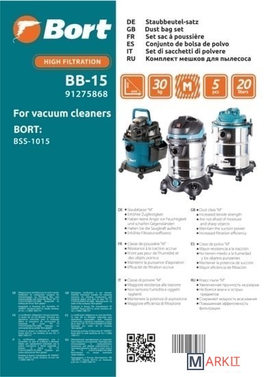 Markit » Аксессуары для пылесосов, пароочистителей » Комплект одноразовых мешков Bort BB-15