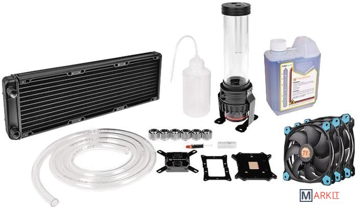 Thermaltake представляет комплект для самостоятельной сборки системы жидкостного охлаждения.В комплект входят следующие компоненты: - Водяной блок Pacific W1- Комбинированный насос / резервуар Pacific PR22-D5- Радиатор Pacific R360- Фитинги Pacific (6 шт)- Вентилятор Riing 12 LED Blue Fan (3 шт)- Трубка V-tubler 4T- Хладагент 1000 мл. синий- Универсальный комплект для монтажа процессоров Intel и AMD- Термопаста- 24pin x1 ATX Bridge Tool