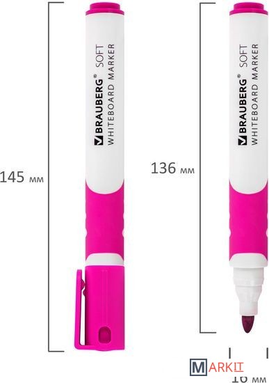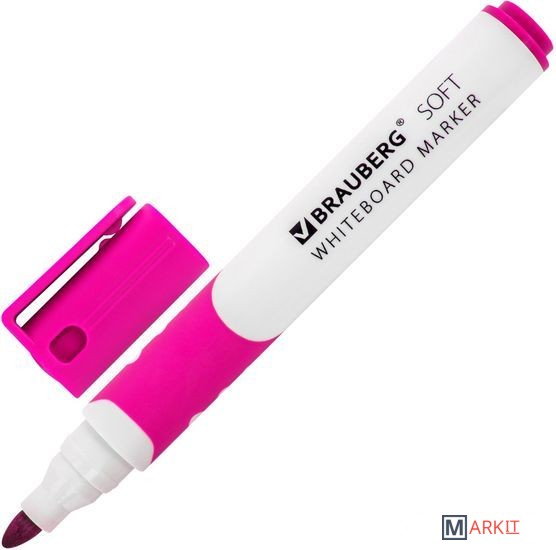 Высококачественный маркер BRAUBERG «SOFT» для белой доски. Предназначен для письма на досках с магнитно-маркерной поверхностью.Маркер для доски розового цвета обладает круглым пластиковым корпусом диаметром 16 мм. Корпус оснащен удобной прорезиненной зоной захвата для более удобного использования. Наконечник круглой формы обеспечивает толщину линии письма 5 мм, что позволяет писать крупным шрифтом, который будет хорошо виден. Основа чернил — спиртовая. Чернила быстро высыхают и не оставляют разводов, легко стираются сухой губкой. Изделие не перезаправляется. Цвет колпачка и прорезиненной вставки соответствует цвету чернил.