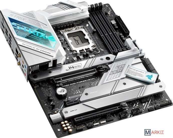 Материнская плата с чипсетом Intel Z690: процессорный разъем LGA 1700, форм-фактор ATX, PCIe 5.0, 16+1 силовой модуль DrMOS, системы интеллектуального шумоподавления, разгона, охлаждения и сетевого подключения, Wi-Fi 6, 2.5G Ethernet (контроллер Intel), четыре слота M.2 с радиаторами, поддержка NVMe-накопителей в режиме PCIe 4.0, кнопка Q-Release для слота PCIe, USB 3.2 Gen2x2 Type-C, SATA, синхронизируемая подсветка AuraРазъем LGA 1700: для процессоров Intel Core 12-го поколения, Pentium Gold и CeleronСистема питания: 17 силовых модулей (16+1), разъем питания ProCool II, высококачественные дроссели и долговечные конденсаторыОптимизированное охлаждение: радиаторы системы питания объединены с кожухом интерфейсной панели, термопрокладки с высокой теплопроводностью, четыре радиатора M.2, усилительная пластина для первого слота M.2Высокоскоростные сетевые контроллеры Intel: беспроводной Wi-Fi 6 и проводной 2.5G EthernetСовременные интерфейсы: HDMI 2.1, DisplayPort 1.4, четыре слота M.2, USB 3.2 Gen2x2 Type-CИнтеллектуальные технологии разгона и двухстороннего шумоподавления: эксклюзивное программное обеспечение облегчает настройку и помогает оптимизировать работу компьютераДля энтузиастов: кнопка Q-Release для слота PCIe, слоты M.2 с защелками Q-Latch, кабельный органайзер ROG, предустановленная корпусная заглушка, удобное обновление прошивки (BIOS FlashBack), кнопка Clear CMOSПолноцветная подсветка Aura: встроенная подсветка и разъемы для подключения внешней, технология синхронизации Aura SyncВысококачественный звук: аудиокодек ALC4080 с усилителем Savitech SV3H712, аудиоэффекты DTS Sound Unbound, приложение Sonic Studio III для настройки звучанияДополнительное программное обеспечение: 60-дневная пробная подписка на AIDA64 Extreme и встроенная в интерфейс UEFI BIOS утилита MemTest86