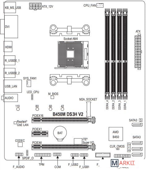 Markit » Материнские платы » Материнская плата Gigabyte B450M DS3H V2 (rev. 1.0)