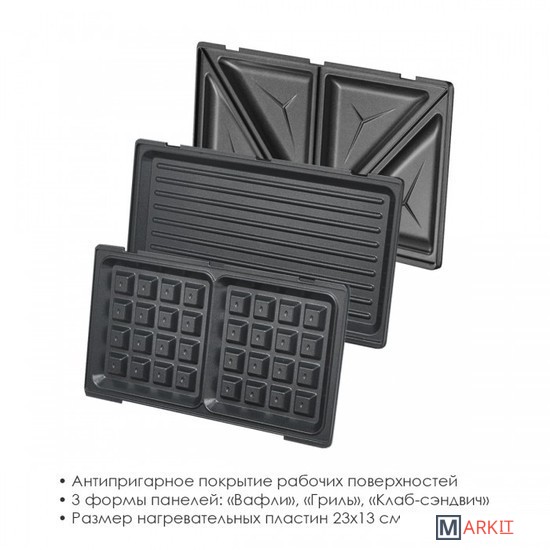 Рабочая поверхность гриль-пластина, форма для 2 ломтиков хлеба, вафельница