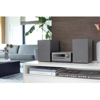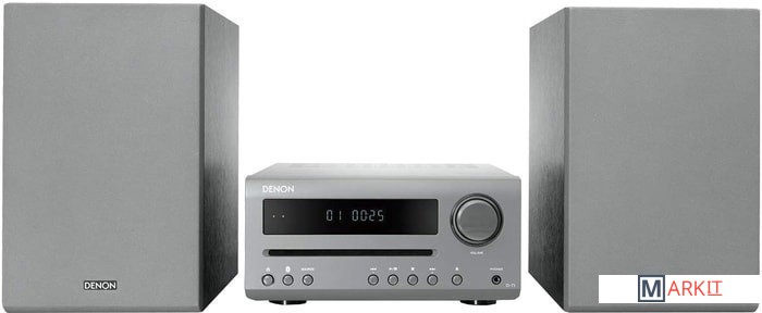 Микросистема Denon D-T1 с Bluetooth позволяет подключить к музыкальной системе ваш смартфон, планшет или нотубук и слушать любимые треки и популярные потоковые музыкальные сервисы из сети Интернет. В дополнение к Bluetooth, проигрывателю компакт-дисков и AM/FM-тюнеру, предусмотрен оптический цифровой вход для подключения телевизора или игровой приставки. Двухполосные акустические системы с 12-сантиметровым низкочастотным динамиком и 2,5 см купольным твитером имеют мощность 15 Вт. Также вы можете слушать музыку через встроенный усилитель для наушников.