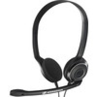 Недорогая проводная гарнитура с двумя наушниками, регулятором громкости и интерфейсом USB.