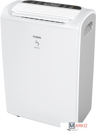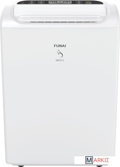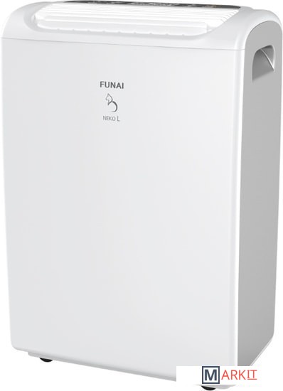 Модели NEKO L с производительностью от 22 до 26 литров в день, имеют функцию сушки одежды, что позволяет их использовать в небольших прачечных, частных банях и саунах. Все модели осушителей FUNAI оснащены традиционными функциями: таймером 1–24 часа, системой настройки скорости обдува, интеллектуальным управлением уровнем влажности воздуха.Для безопасной эксплуатации на панель управления осушителей добавлена индикация уровня воды в баке и режима разморозки, который автоматически включается при падении температуры окружающего воздуха ниже +5 °C, останавливая работу компрессора.