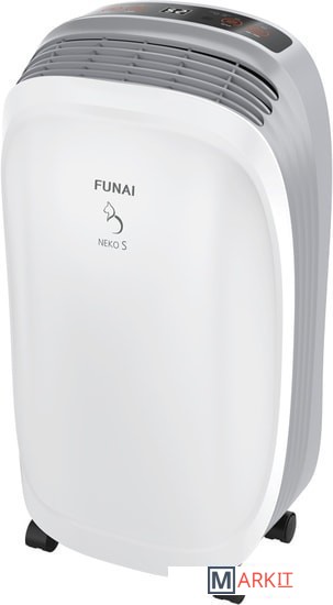 Базовая модель NEKO S имеет производительность по осушению до 10 литров в день и оптимальный набор настроек, что позволяет эффективно использовать дома, на даче или в гараже. Все модели осушителей FUNAI оснащены традиционными функциями: таймером 1–24 часа, системой настройки скорости обдува, интеллектуальным управлением уровнем влажности воздуха.Для безопасной эксплуатации на панель управления осушителей добавлена индикация уровня воды в баке и режима разморозки, который автоматически включается при падении температуры окружающего воздуха ниже +5 °C, останавливая работу компрессора. Для удобства перемещения модели оснащены колесиками.