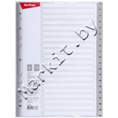 Разделители для регистраторов пластиковые Berlingo, 20 л., индексы по цифрам (1-20) Код: 32580