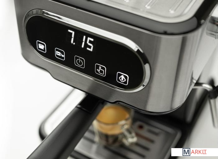 Управление кнопками.Регулируемый вспениватель молока поможет вам подогреть молоко и приготовить густую кремовую пенку. Материал: Нержавеющая сталь.