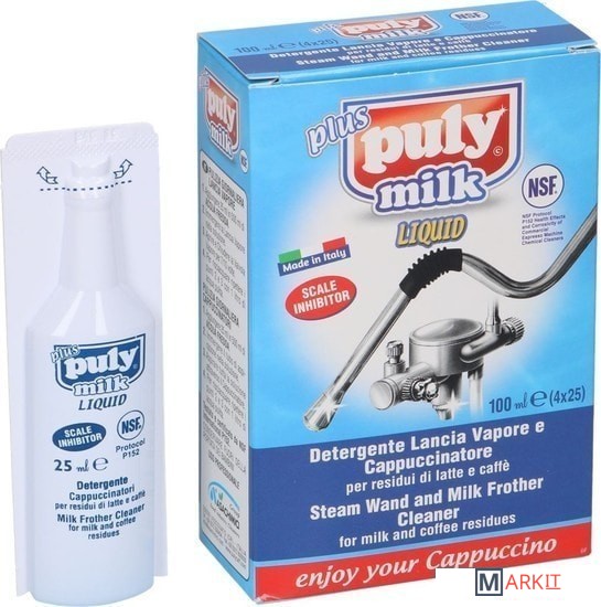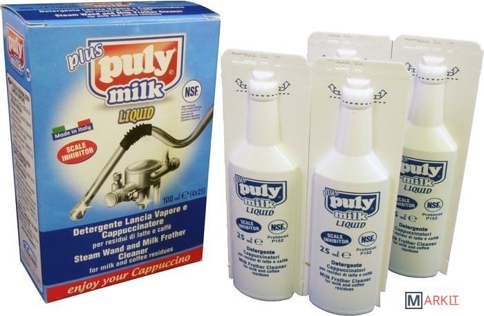 Жидкость для очистки ручных и автоматических капучинаторов, молочных трубок, панарело и т.д. PULY MILK обеспечивает полное удаление всех наростов, внутренних и внешних, уничтожая бактерии, которые могут попадать в напиток, если не пользоваться средством периодически.