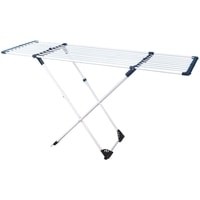 Сушилка для белья напольная. Общая длина тросов для сушки белья 20 м. Телескопическая раздвижная конструкция (изм. длины тросов 90-180см), съемная планка (увелич. длины тросов до 135см), тросы в виде трубок, колесики для перемещ, пластик. крючки для мелких вещей.