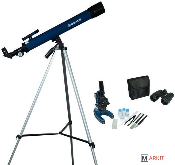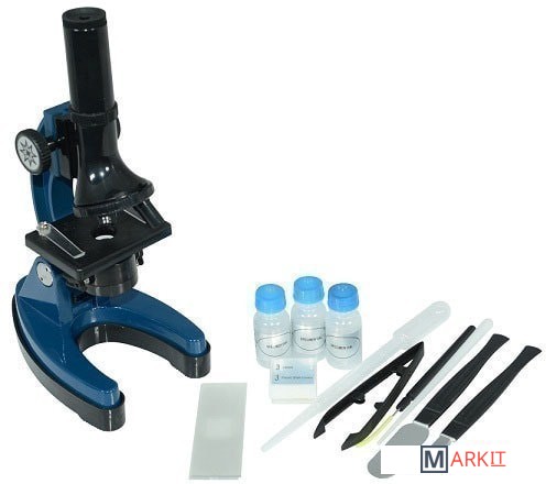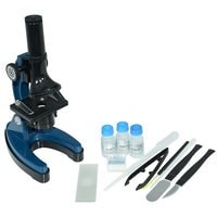 Микроскоп:Микроскоп с 3-мя объективами, окуляр 10х, запасная лампочка, флакон для образцов (3 шт.), предметные стекла (3 шт.), круглые покровные пленки (3 шт.), наклейки для стекол (3 шт.), пластиковый скальпель, пипетка, лопаточка, пинцет, препаровальная игла, палочка для размешивания;Бинокль:Игрушечный бинокль: 4х30, салфетка для чистки оптики, чехол.