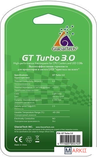 Markit » Системы охлаждения » Термопаста GlacialTech GT Turbo 3.0 (3 г)