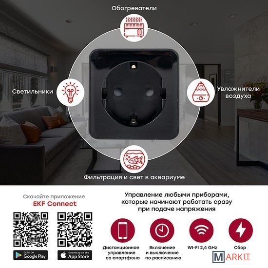 Умная розетка EKF Connect Pro поможет сделать обычные приборы умными. При помощи приложения для Android и iOS, а также при помощи голосовых помощников Алиса от Яндекса, Маруся от VK и Салют от Сбера можно управлять светильниками, вентиляторами, обогревателями, увлажнителями и любыми другими приборами, которые начинают работать сразу же при подаче напряжения. Версия Pro позволяет измерять напряжение, силу тока, мощность и собирать статистику энергопотребления по дням и месяцам.Максимально допустимая общая мощность нагрузки, Вт 4000Номин. ток 16 А