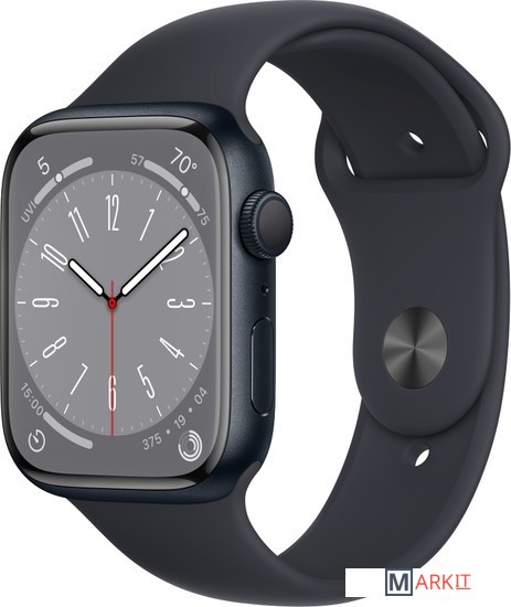 Markit » Умные часы и браслеты » Умные часы Apple Watch Series 8 45 мм (алюминиевый корпус, полуночный/полуночный, спортивный силиконовый ремешок)