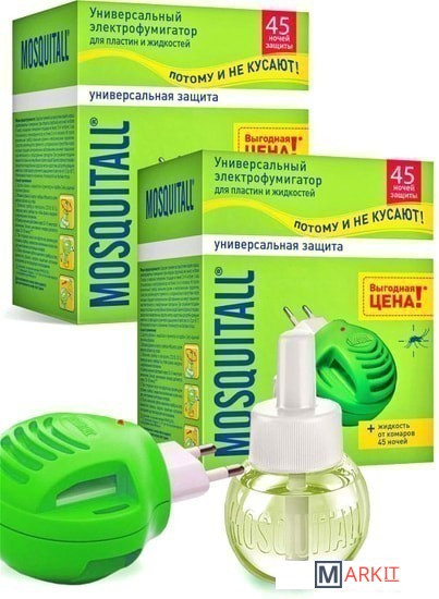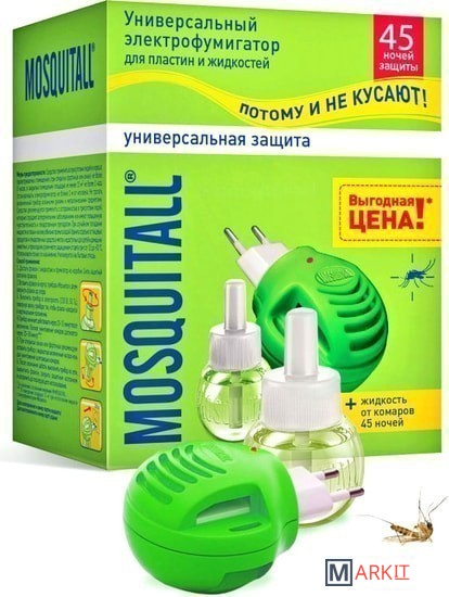 Markit » Уничтожители насекомых, отпугиватели, ловушки » Уничтожитель насекомых Mosquitall Универсальный фумигатор + 30 мл