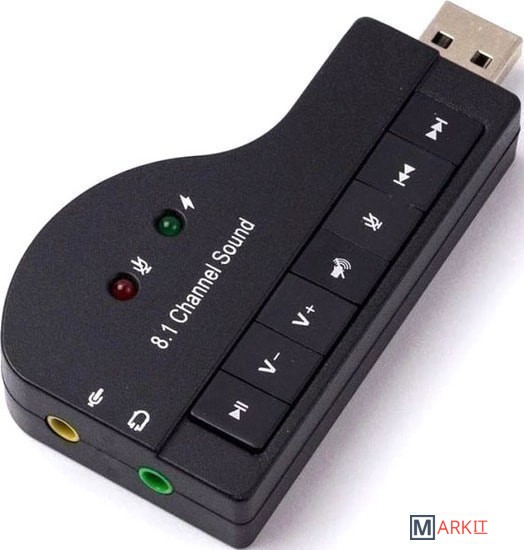 Внешняя звуковая карта USB 3D 2.1/8.1-канальная предназначена для подключения динамиков, колонок, наушников или микрофона через порт USB компьютера или ноутбука. Если у Вас не работает системная звуковая карта, некачественный звук или Вас не устраивает базовая громкость Ваших динамиков или в Вашей технике отсутствует порт jack 3.5mm, либо Вам необходимо подключить гарнитуру с микрофоном или отдельно микрофон, данный адаптер будет отличным решением данной задачи. Встроенные кнопки дают возможность увеличить громкость или вообще ее отключить, также можно отключить микрофон. Технология HI-FI (чистый звук / честный звук), перев. с англ. Hi-Fi “High Fidelity” высокая точность — означает, что воспроизводимый аппаратурой звук очень близок к оригиналу. Не предназначена для телевизора. Не требует установки драйвера.Характеристики:– Встроенные кнопки дают возможность увеличить/уменьшить громкость или вообще ее отключить, также можно отключить микрофон.– Поддержка технологии HI-FI (чистый звук).– Поддержка трехмерного звука и виртуального 8.1-канальный.– Поддержка колонок или наушников, функция записи микрофона; функция свободного переключения между режимами наушников и динамика.– Поддержка файлов формата WAV/MP3/WMA/MPEG1 (VCD)/MPEG2 (SVCD)/AVI/DVD_Audio/DVD_AC3/DVD_DTS/DiVX.– Технология Xear 3D полностью поддерживает функции MS DirectX, EAX1.0/2.0, HRTF 3DX.– Функция микшера.– 12 предустановленных ритмических режимов.– 27 предустановленных режима звукового поля.– Преобразует аналоговый сигнал (микрофон и линейный сигнал CD, MP3, TV, радио и т.д.) в цифровой сигнал.– Интерфейс USB2.0, адаптер совместим с интерфейсом USB3.0 и обратно совместим с версией USB1.1. Скорость передачи данных: 12 Мбит/с.– Автоматическая регулировка уровня выходного сигнала.– Световой LED индикатор показывает рабочее состояние адаптера.– Не требуется установки драйвера.– Поддержка всех ОС: Windows 2000/XP/Server 2003/VISTA 7/8/10, Linux, Mac OS и др.