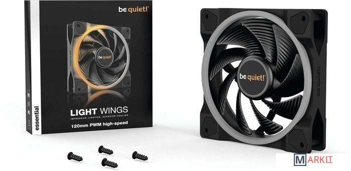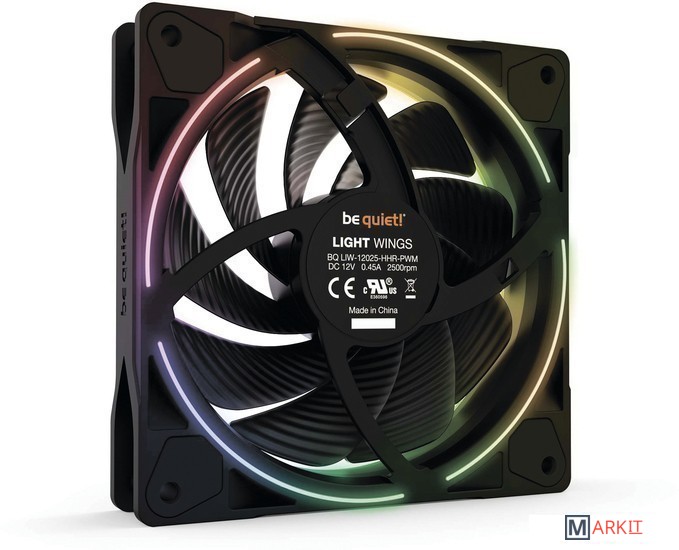 Light Wings 120mm PWM high-speed оснащен ARGB-подсветкой спереди и сзади. Слегка подсвеченное кольцо сзади в сочетании с яркой фронтальной подсветкой создают великолепный вид со всех сторон. 18 ARGB светодиодов обеспечивают различные возможности для создания уникального образа вашего ПК.Благодаря очень высокому давлению воздушного потока до 2,6 мм /H2O, Light Wings 120mm PWM high-speed является лучшим выбором для радиаторов СВО и кулеров. Девять лопастей с оптимизированным воздушным потоком обеспечивают достаточное давление воздуха даже для сложных конфигураций систем охлаждения.Фронтальная и тыльная ARGB подсветкаРазличные цвета и режимы подсветки благодаря использованию 18 LED светодиодовДевять лопастей вентилятора с оптимизированной структурой поверхности создают высокое воздушное давление и низкую турбулентность воздушного потокаОтличное соотношение производительности и шума: 31 дБ(А) при 2500 об/минНадежный подшипник скольжения с винтовой нарезкой (наработка на отказ – 60.000 часов)