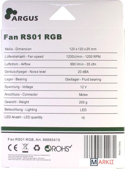 Markit » Системы охлаждения » Вентилятор для корпуса Inter-Tech Argus RS01 RGB