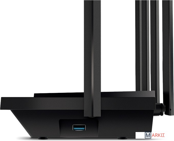 Гигабитный Wi‑Fi для 8K‑стримов — Wi‑Fi со скоростью до 5400 Мбит/с позволит одновременно работать в интернете, смотреть потоковые видео и загружать файлы на высокой скорости.Преимущества Wi-Fi 6 — поддержка 4T4R и HE160 на диапазоне 5 ГГц обеспечивает скорость подключения до 4,8 Гбит/с.Возможность подключения свыше 100 устройств§ — поддержка MU‑MIMO и OFDMA позволит уменьшить загруженность сети и увеличить среднюю пропускную способность в четыре раза.Широкая зона покрытия — гарантируется шестью антеннами и технологией Beamforming.HomeShield — сервис премиум‑защиты TP‑Link обезопасит домашнюю сеть с помощью новейших технологий для защиты сети и IoT‑устройств.Больше отверстий, ниже температура — улучшенная вентиляция позволяет устройству работать на полную мощность.Общий доступ к USB‑накопителю — порт USB 3.0 позволит без труда делиться медиафайлами и создать частное облако.Простая настройка — приложение Tether позволит настроить роутер за пару минут.Поддержка OneMesh — используйте усилители OneMesh, чтобы создать покрытие во всём доме и не терять сигнал при перемещении.