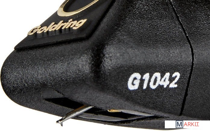 Звукосниматель с подвижным магнитом (MM-тип) Goldring 1042 предназначен для наиболее требовательных к качеству звука меломанов, и рассчитан на использование в составе высококлассных проигрывателей винила. В то же время, в данном звукоснимателе предусмотрена возможность смены иглы (тип 1042 – D42), что, с учетом вполне разумной стоимости, делает Goldring 1042 весьма выгодным приобретением.Головка имеет фирменную заточку иглы Gyger-S, обеспечивающую точное считывание информации со звуковой дорожки винилового диска. Goldring 1042 обеспечивает довольно высокое выходное напряжение в 6,5 мВ, что делает ее совместимой с любыми фонокорректорами, в том числе и ламповыми. Выходной импеданс звукоснимателя также вполне стандартный, поэтому даже если фонокорректор не имеет настройки входных параметров, это не станет препятствием для подключения к нему Goldring 1042.Необходимо отметить, что данный звукосниматель весьма чувсвтителен к точности настройки на тонарме, но при выполнении этой работы с должным вниманием порадует владельца отличным звуком. Головка получила хорошие отзывы в специализированной прессе, в которых особенно отмечается воздушность и высокая детальность звуковых образов, протяженность стереокартины, а также весьма широкий диапазон воспроизводимых частот.Корпус головки выполнен из антирезонансного материала, и надежно защищает ее магнитную систему от любых внешних механических воздействий. Контакты для подключения кабеля тонарма имеют золотое покрытие. Звукосниматель Goldring 1042 изготавливается на заводе фирмы в Великобритании, с использованием высокоточного оборудования, и тщательно тестируется на всех стадиях сборки. Это гарантирует высокую надежность головки в течении всего срока эксплуатации, и сохранения фирменного звукового подчерка, высоко ценимого меломанами всего мира. Головка Goldring 1042 может с успехом использоваться не только на новых проигрывателях виниловых дисков, но и в качестве апгрейда существующих моделей, способных поднять качество их звучания на пару ступенек вверх.